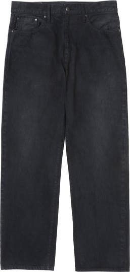 Five pocket Japanese selvedge denim jeans featuring a more fitted waist that opens throughout the leg into a relaxed straight silhouette.