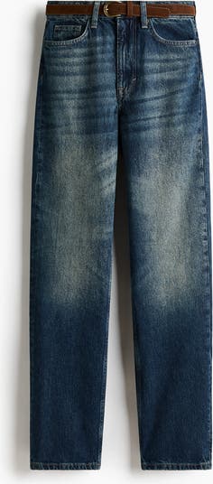 5-pocket jeans in rigid cotton denim that feels firm at first but then softens and loosens with wear. Straight leg with a regular fit from the waist to the hip and a looser, straight cut from the thigh to the hem. High waist with a belt, zip fly and button. Regular length, designed to hit the top of the foot with little or no stacking. This classic shape complements everything from hoodies to blazers.