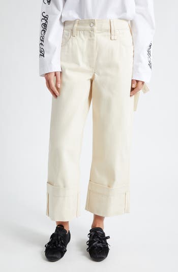 A bow-tied loop adds signature sweetness to straight leg carpenter pants cut from nonstretch cotton for rugged structure.