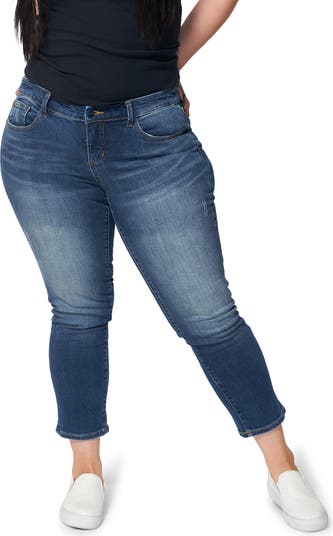 Modern mid-rise straight-leg jeans offer a casual-cool vibe in soft, medium-wash stretch denim with a perfectly lived-in fade.