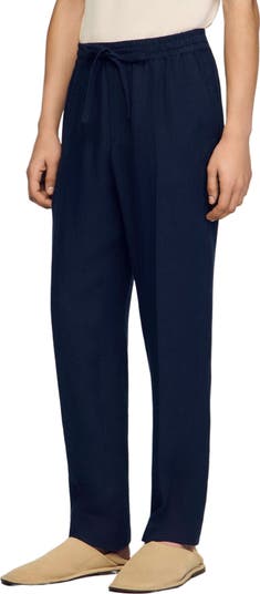 Classic-fit linen trousers with an elasticated waist and drawstring.