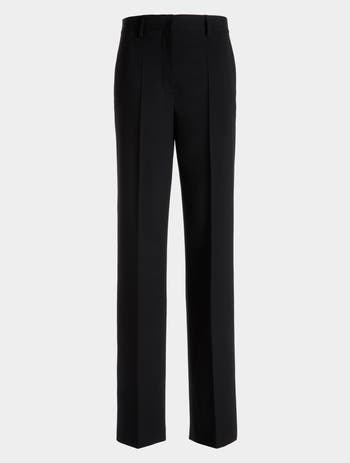 These wool blend trousers feature a central crease down the straight leg. A Bally Crest label accents the rear waistband.