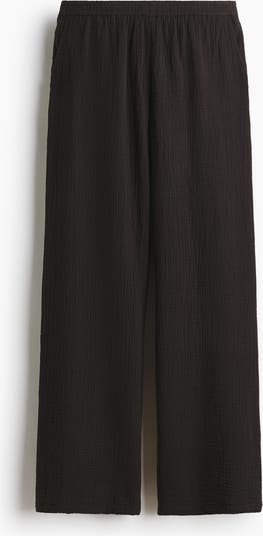 Trousers in soft cotton muslin with an elasticated waist, diagonal side pockets and straight legs.