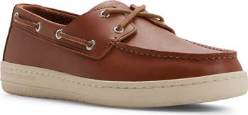 Classic moc-stitched construction meets grainy leather and a 360° lacing system on this sleek boat shoe outfitted with a Wave-Siping™ rubber sole for ultimate traction on wet and dry surfaces.