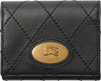 A compact wallet made in Italy from quilted calf leather, treated to give a supple, textured finish. The style is finished with a metal Knight stamp, an archival motif first seen on Burberry bags in the 1980s.||Foldover top with press-stud closure|Six card slots|Five slip pockets|Zip compartment|Hand-painted edges|Brushed metal hardware|Embossed Equestrian Knight Design at front|Comes with a dust bag