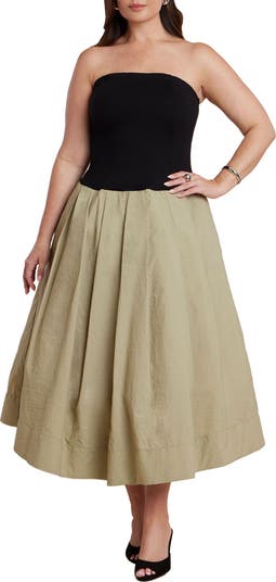 - Make a refined statement in this strapless dropped waist dress, designed with a mixed-media finish. Opposing textures and a flowing skirt create unexpected sophistication and dimension.