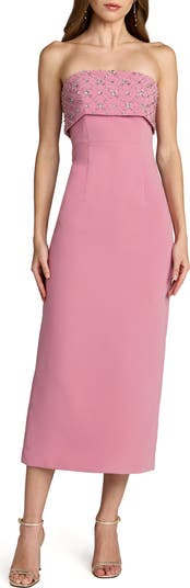 Strapless Crepe Rhinestone Ankle Length Dress