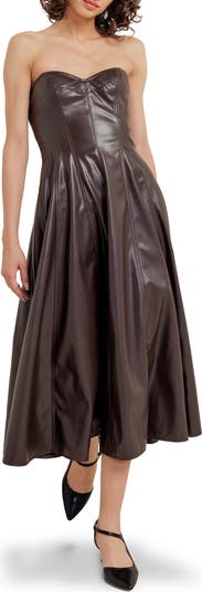 Strapless Faux Leather Midi Dress