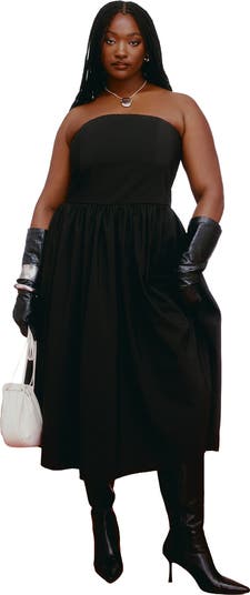 A study in effortless sophistication, this strapless drop-waist midi dress flows from an easy-layering neckline to a full skirt. Crinoline layers beneath add volume and vintage-inspired glamour.