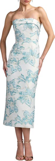Strapless Floral Brocade Midi Column Dress