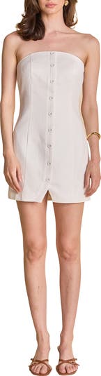 Sweeten a sunny day in this breezy linen-blend mini designed in a sleek strapless silhouette.