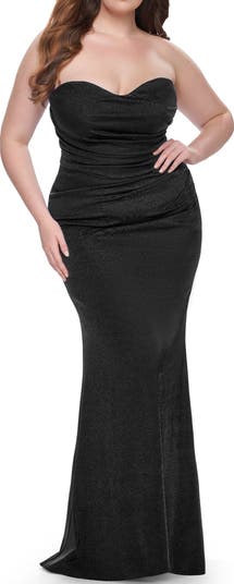 Strapless Ruched Stretch Satin Plus Size Dress