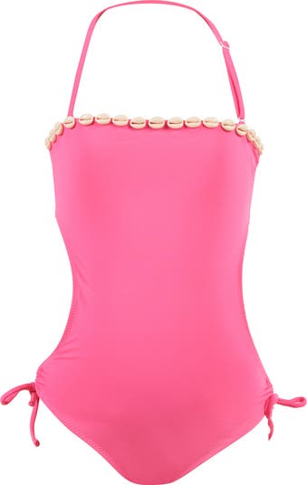 Strapless Shell-Adorned Halter with Side Ties One-Piece Swimsuit