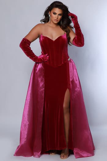 Strapless Velvet Corset Plus Size Evening Gown with Gloves