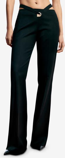 A strappy detail hugs your curves as you stun in these modern, wool-enhanced pants featuring secure, zippered pockets.