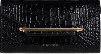 Strathberry's signature bar closure polishes this handcrafted croc-embossed calfskin wallet that opens to multiple card slots and a zipped pocket. Wear it crossbody using the detachable chain strap or carry as a clutch at evening events.