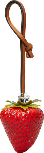 Put a deliciously sweet finishing touch on your look with this ultrarealistic strawberry bag charm detailed with brand-signature stacked-T hardware.