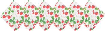 Featuring artwork by Lucinda Wei, the Strawberry Patch & Plaid printed table linen collection showcases vibrant strawberry plants with intricate crowns and cute botanical leaves, blossoming throughout the pattern. For versatility, the reverse side offers a summertime red and green plaid design, providing more styling options or a classic picnic-inspired look.
