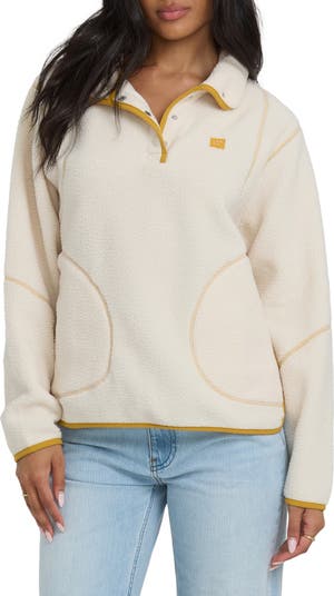 Fluffy high-pile fleece enhances the warmth of this sporty half-snap pullover made with subtle contrasting trim.