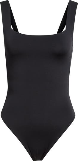 A contemporary cut lends a streamlined look to this stretchy one-piece swimsuit.