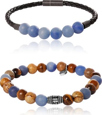 - Set of Two Bracelets: Includes one sodalite stretch bracelet and one braided cord bracelet with sodalite accents.