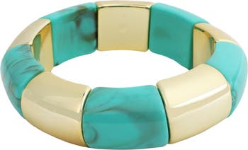 Swirling resin and 14-karat gold-plated beads alternate along this chunky stretch bracelet that's a go-to for making a statement.
