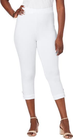 An easy way to go about your day, our pull-on style stretch capri has a 2" cuffed detail at the calf. Non-functional gold button at the cuff rim.