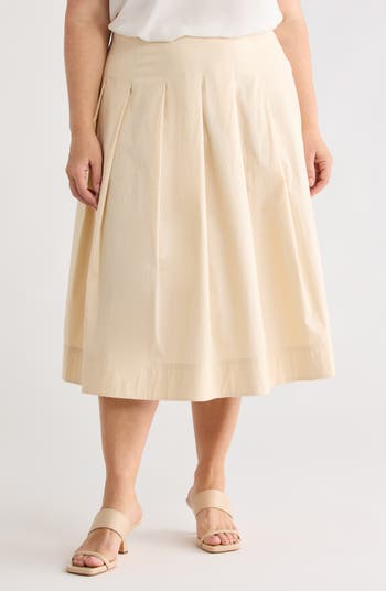 Enjoy the easy fit and flowy movement of this midi skirt made from soft stretch-cotton poplin and highlighted by box pleats.