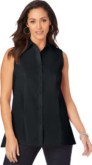Jessica London Stretch Cotton Poplin Sleeveless Shirt, Alternate, color, Black
