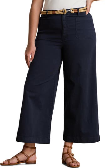 A classic hue gives timeless appeal to these wide-leg pants crafted from a stretch-cotton twill and updated in a cropped silhouette.
