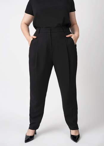 Stretch Crepe Pleated Plus Size Trouser
