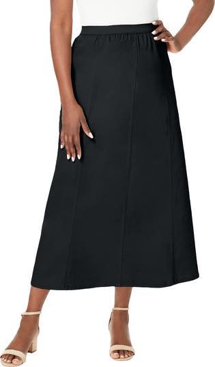 A pull-on denim skirt designed with maximum stretch, an elastic waist and a smooth, flattering fit.? This women’s plus size stretch denim jegging skirt delivers the look of a classic denim skirt with the comfort of a jegging. Crafted from ultra-stretch denim, it flexes easily with your body while?maintaining?a smooth, polished appearance for easy styling from morning to night. Key Features: