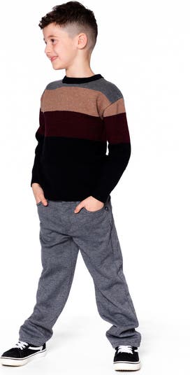 The Stretch Jacquard Pants Grey Herringbone are a sharp and comfortable choice for dressy or everyday looks. Made from soft stretch jacquard, these pants feature a timeless herringbone pattern, classic 5-pocket styling, and a comfortable waistband for all-day ease. They offer the polished look of tailored trousers with the flexibility kids need for play and movement.