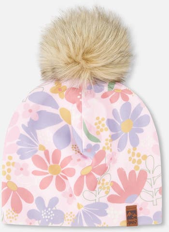 The jersey hat in pink flower print with pompom brings a playful pop to breezy spring days. Softness meets stretch in the lightweight jersey hat for a comfy, stay-put fit that gently hugs the head. Topped with a fluffy removable pompom, an allover print, and made for outings, stroller rides, and playground fun, it’s an easy layer for milder weather in our “Spring Breeze” collection.