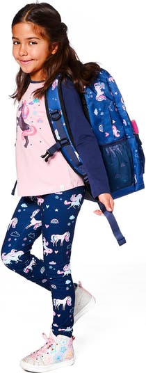 A whimsical unicorn and makes these stretch pants a fresh, fun addition to any little girl's wardrobe! In stretch jersey fabric, these leggings feature an easy pull-on fit with a comfy elastic waistband, a logo label at the hem, and an eye-catching allover print. Team with a matching dress or a coordinating tee to create a variety of playful looks!