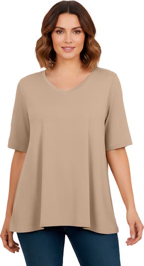 Look no further for your new favorite tunic. We updated our bestselling swing tunic with short sleeves and a V-Neckline. The trapeze silhouette is made to flatter every body, and perfectly pairs with jeans or leggings for a great everyday outfit.