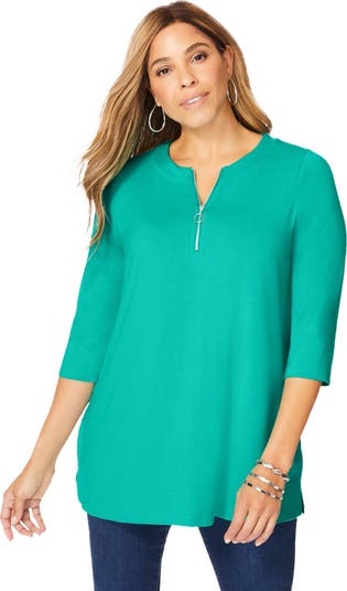 A go-to, figure-flattering tunic in a stylish straight silhouette with a sporty half-zip neckline that’s perfect for all-season wear. Style it with jeans, skirts, or leggings.