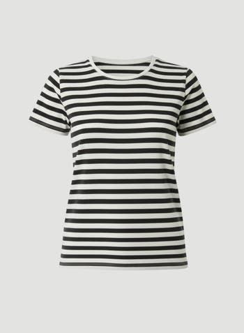 Stretch Linen Stripe Short Sleeve Crewneck T-Shirt