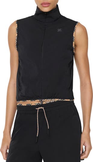 A gilet in super soft stretch nylon. Part of our new activewear collection, the lightweight style is perforated with our signature check at the back panel for breathability and features a reflective Equestrian Knight Design, screen-printed with a gradient effect as if in motion. Cut to a slim fit and trimmed with elasticated Burberry Check taping in signature archive beige.||Two-way zip closure|Side zip pockets|Printed Equestrian Knight Design at chest|Comes with a garment bag