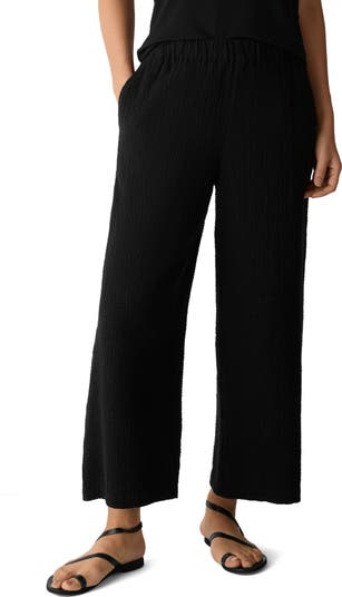 A wide-leg fit and ankle-grazing length add refinement to these pull-on pants, while a crinkled and stretchy organic-cotton doubleweave ensures everyday comfort.
