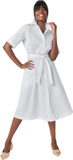 Polished and ultra-chic, this crisp poplin shirtdress is a must-have. Pair it with boots or sneakers, this versatile dress lends itself to both.