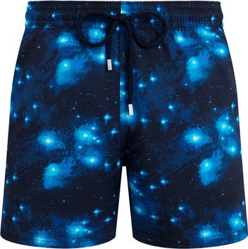 Shorter length men swim trunks with stretch fabric. Elastic waistband with drawstring and zamak tips engraved Vilebrequin. Two side pockets and one rear couture pocket with velcro flap. Two back eyelets allow water to drain and reduce the "balloon†effect when emerging from the water. Side leg length in M: 36.8 cm - slightly shorter than a Moorea classic style. Men Stretch Swim trunks Pearl. Men Short Swim Trunks. 98% recycled polyamide 2% elastane.
