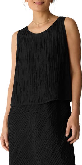 A flowy hem lends a boxy shape to this crinkled shell top made of luxuriously soft, stretch-enhanced silk.