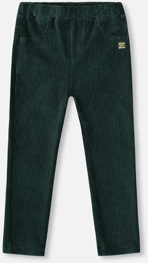 Easy to dress up or down, the Stretch Velour Rib Treggings in Dark Green are a go-to piece for everyday play and cozy outings. These slim-fit pants feature a vertical rib texture in soft stretch velour, and two stitched front pockets that add just the right amount of detail. Their elastic-free design ensures maximum comfort while keeping things stylish and snug.
