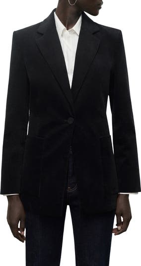 Add a pop of plush to looks both fun and fancy with a veleveteen jacket simply closed with a single covered button.