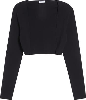 Stretch-kissed virgin-wool yarn delivers a supersoft feel and lightweight warmth to this bolero that will be your new go-to layering piece.