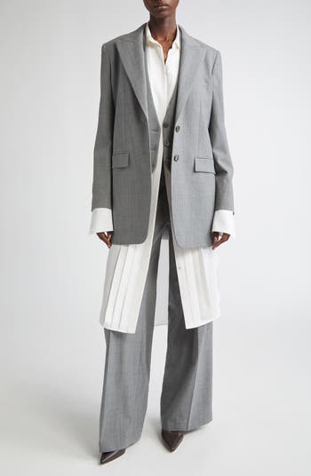 Making its mark on the fall '25 runway, this blazer redefines power dressing with a relaxed silhouette that tempers its sharp peaked lapels and structured shoulders. Tailored from stretch-infused virgin wool, it’s the ultimate blend of precision and ease designed to move with you and make a statement without saying a word.