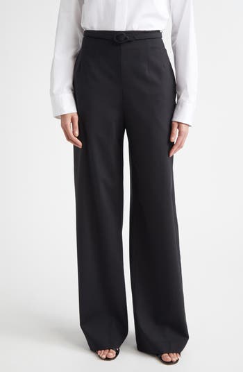 A concealed waist and hidden side zip bring clean lines to these Italian-made, stretch-enhanced virgin wool pants cut with straight legs.
