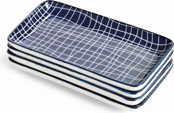 Stria 7" Trays, Set of 4 - Dark Blue/White Ceramic
