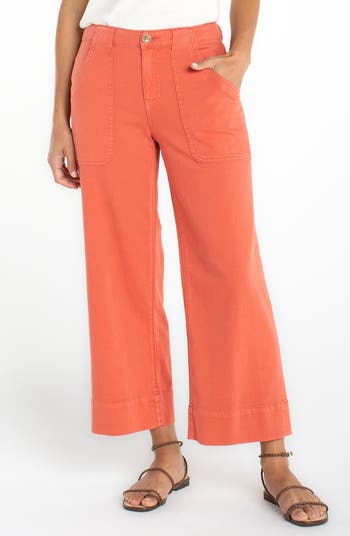 Utility pockets bring trend-right style to these lightweight, nicely draped pants made with a high waist and cropped wide legs.